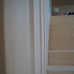 Treppe mit eingebauten Schrankelementen und Schubladen