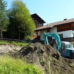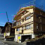 Frühjahr 2015: Baugrube und Baumeisterarbeiten, Produktion Holzelementen.