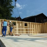 Juli 2015: Montage Holzelementen, Rohbau fertig